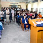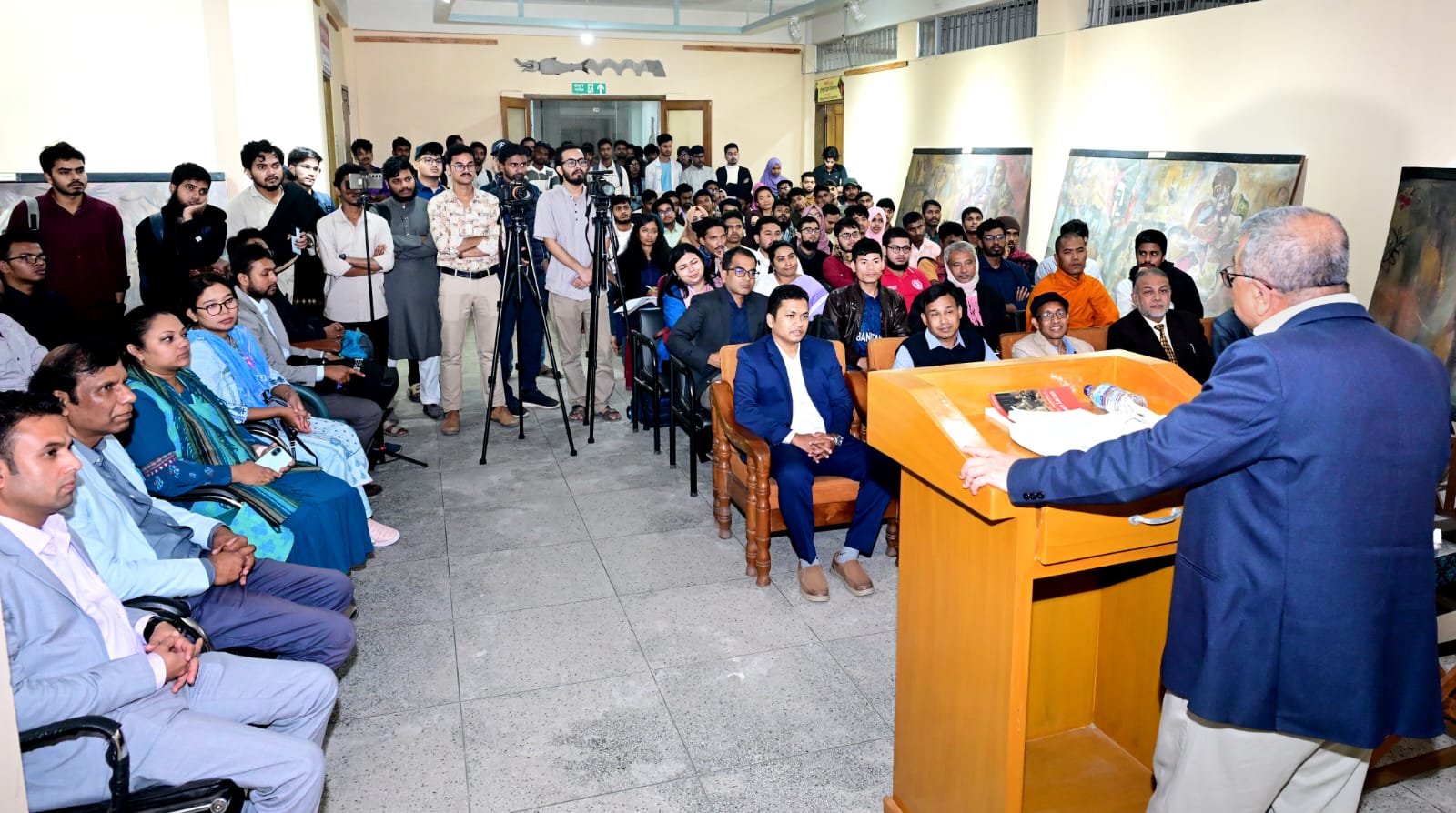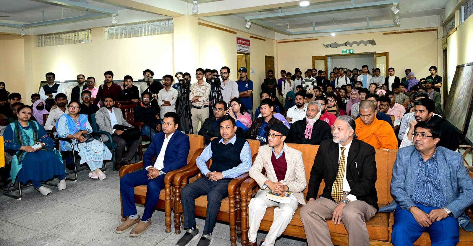 Students from the Institute of Fine Arts, University of Chittagong, engaged in study at the Sculpture Gallery of the Chittagong University Museum.