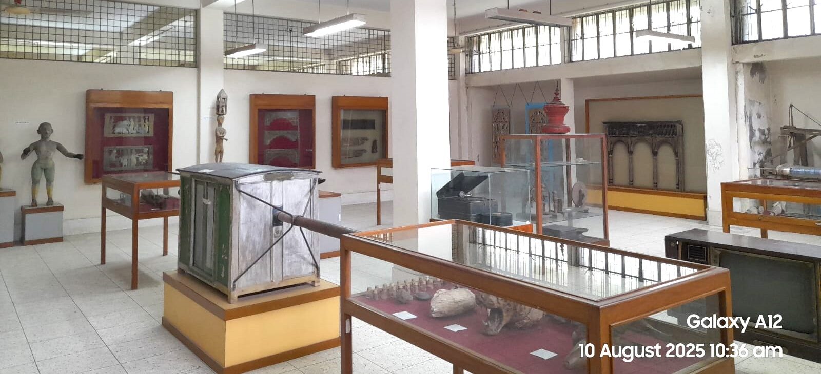 pipe), chest, mask, bow, tambourine etc. are being showcased in the folk art gallery. Hand-woven textile machine and gramophone have recently been added.